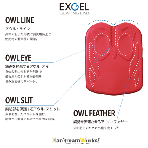 EXGEL アウルパッドアクティブは、アウルパッド部分だけのジェルパット。硬い座面でも快適な座り心地を実現します。自動車の運転中や外出先での座りが続く時にも最適です。さらに、飛行機の座席でも疲れにくい座り心地を提供します。